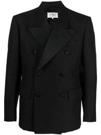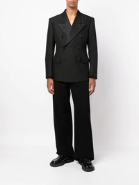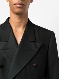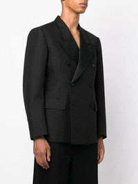double-breasted mohair blazer Highlights - Black - Cotton/wool-silk blend - Double-breasted button fastening - Wide peak lapels - Long sleeves - Decorative stitching - Chest welt pocket - Two front flap pockets - Straight hem Made in Italy Composition Outer: Wool 70%, Silk 52%, Polyester 48%, Mohair 30% Lining: Cotton 100%, Viscose 100% Washing instructions Dry Clean Only