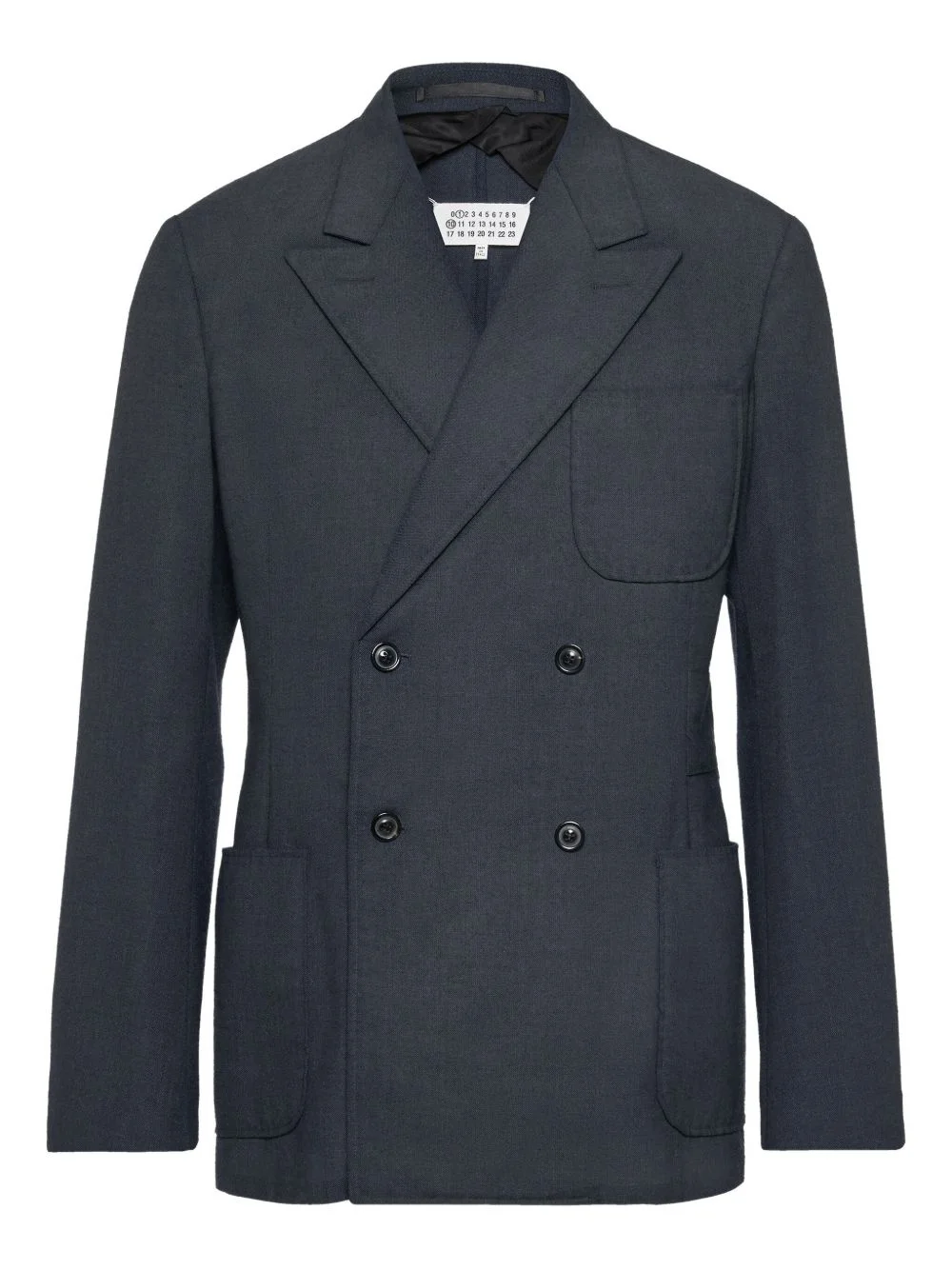double-breasted patch-pocket jacket Highlights - Dark grey - Double-breasted closure - Patch pockets - Peak lapels - Long sleeves Made in Italy Composition Wool 100% Washing instructions Read Manufacturer Guidelines
