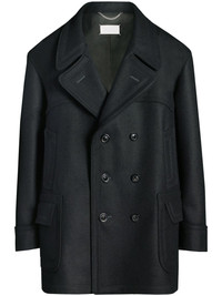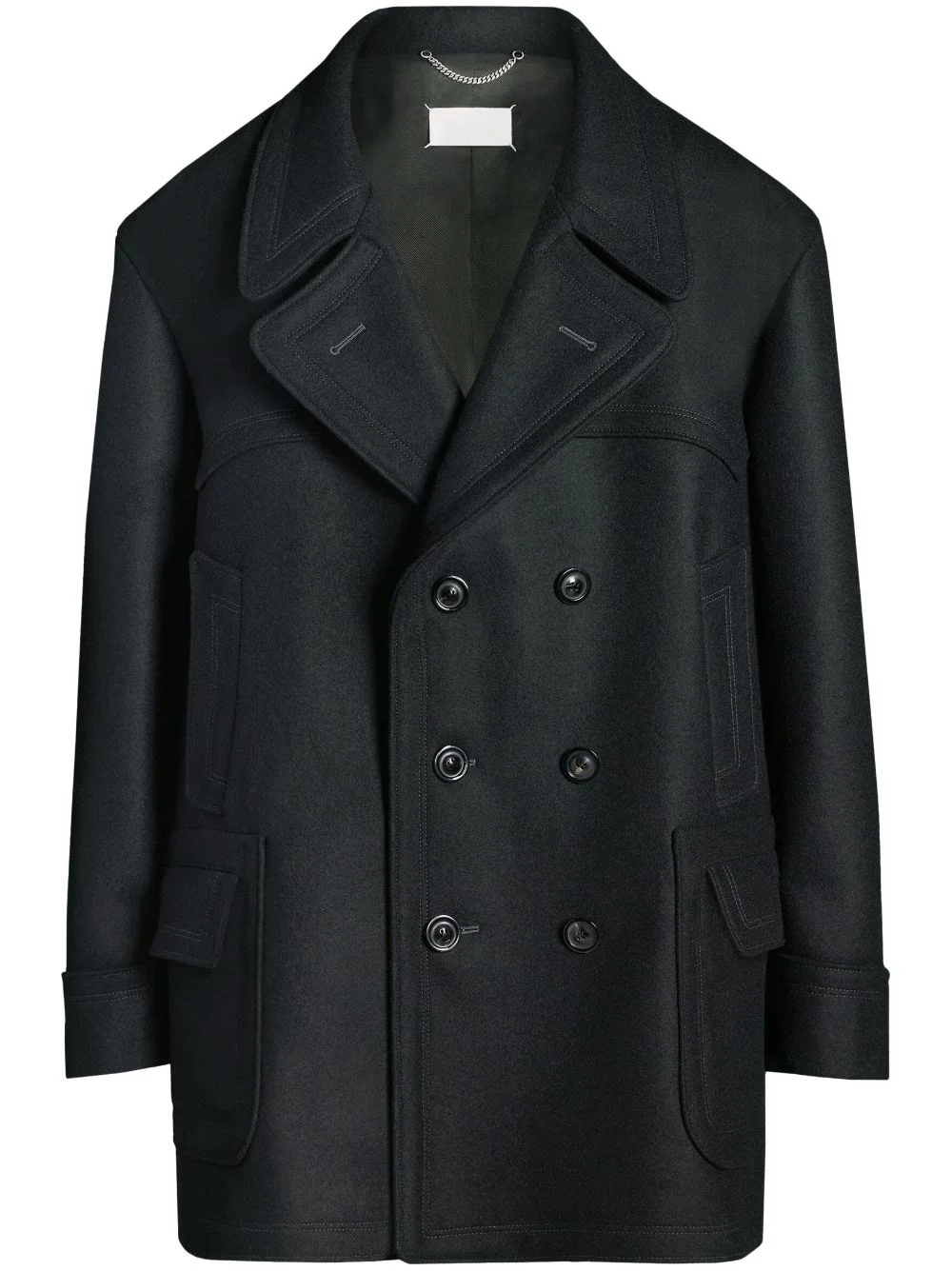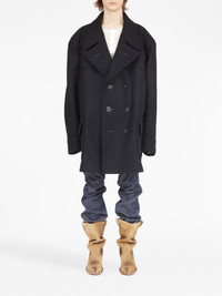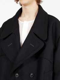 double-breasted wool-blend coat Highlights - Black - Wool blend - Oversize design - Tonal stitching - Signature four-stitch logo - Adjustable strap to the rear - Notched lapels - Double-breasted button fastening - Drop shoulder - Long sleeves - Two front flap pockets - Straight hem Made in Italy Composition Wool 95%, Polyamide 5%