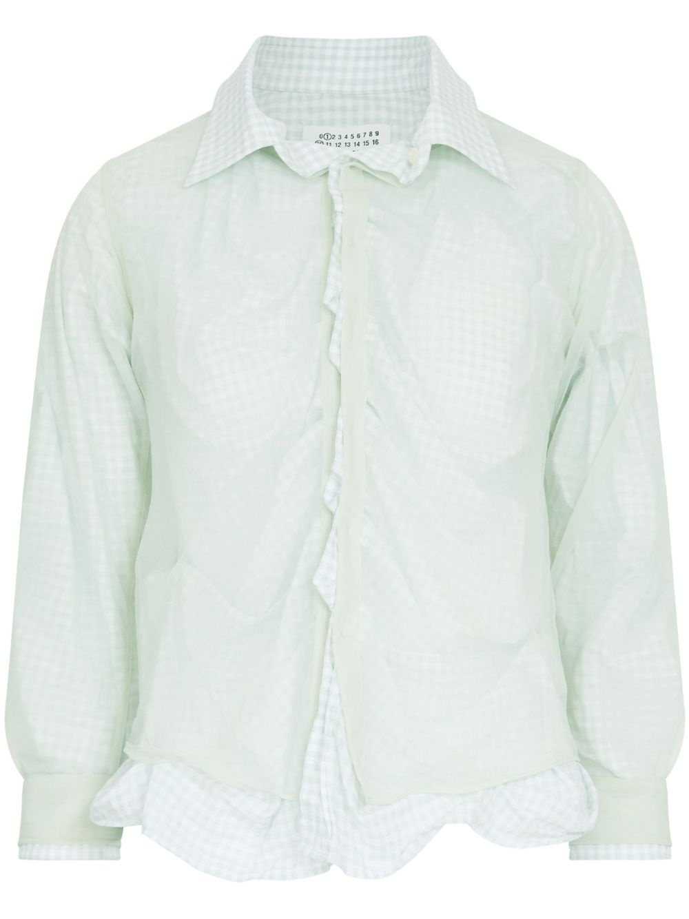 double-layer cotton shirt Highlights - Light green - Cotton - Double layer - Front button fastening - Classic collar - Ruched detailing - Long sleeves - Asymmetric hem Made in Italy Composition Cotton 100% SIZE & FIT Measurement BUST 35.43 in(90 cm) LENGTH 26.77 in(68 cm) Shoulder Width 18.89 in(48 cm) SLEEVE LENGTH 20.86 in(53 cm) WAIST 33.07 in(84 cm)
