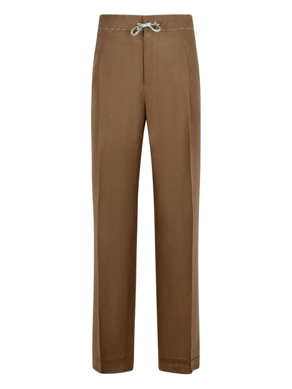 drawstring-waist pleated pants Highlights - Brown - Drawstring waistband - Hook button closure - Concealed zip - Front pleats - Back stitching - Welt pockets Made in Italy Composition Mohair 60%, Wool 40% Washing instructions Read Manufacturer Guidelines
