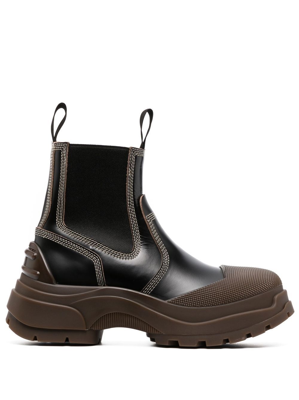50mm Alex boots Highlights - Elasticated side-panel detail boots from maison margiela featuring pull-tab at the heel, elasticated side panels, platform sole, dark brown, calf leather, ankle length, round toe and branded insole. Made in Italy Composition Leather 100% SIZE & FIT Measurement CIRCUMFERENCE 9.84 in(25 cm) HEEL 1.96 in(5 cm) HEIGHT 5.9 in(15 cm) Sole height 1.18 in(3 cm)
