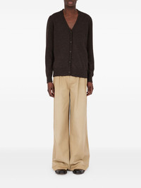 elbow-patch wool cardigan Highlights - Coffee brown - Front button fastening - Ribbed cuffs and hem - Signature four-stitch logo - V-neck Imported Composition Wool 100% Washing instructions Read Manufacturer Guidelines
