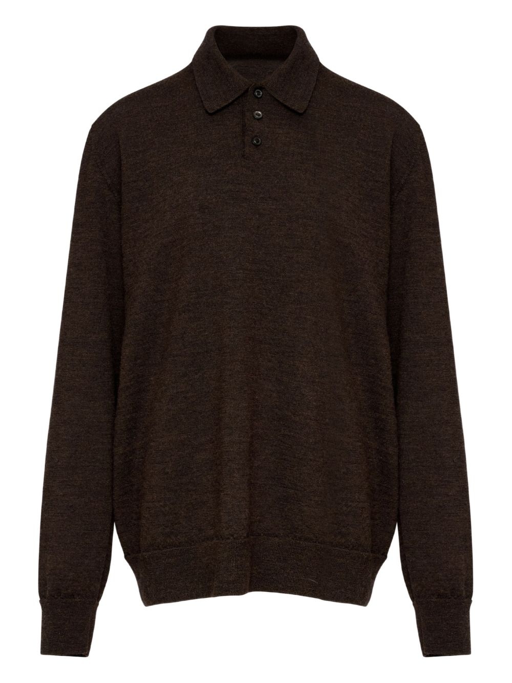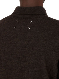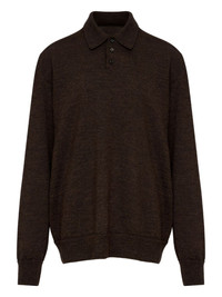 elbow-patch wool polo shirt Highlights - Coffee brown - Short front button fastening - Ribbed cuffs and hem - Signature four-stitch logo - Long sleeves Imported Composition Wool 100%