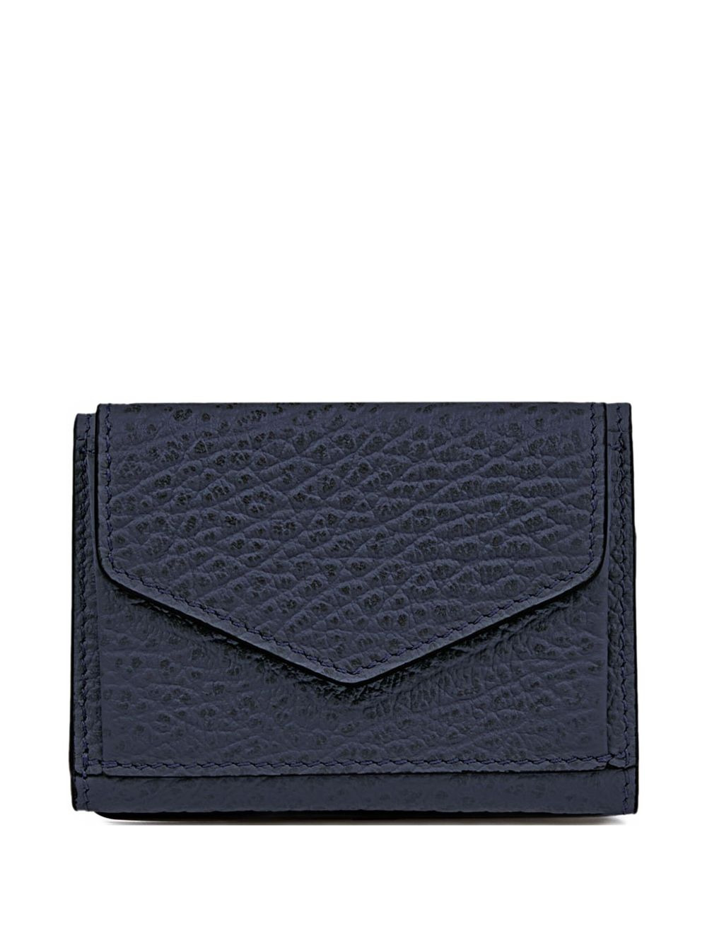 embossed leather snap wallet Highlights - Dark blue - Grainy leather - Envelope pocket - Snap button closure - Signature four stitches detail - Numeric logo Made in Italy Composition Calf Leather 100% SIZE & FIT Measurement DEPTH 0.39 in(1 cm) LENGTH 2.75 in(7 cm) WIDTH 3.54 in(9 cm)