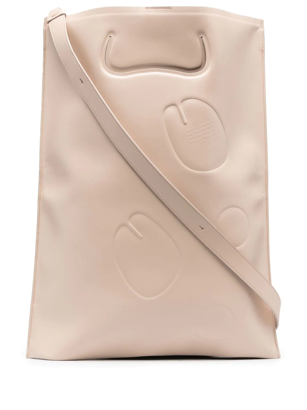 Tabi flat leather tote bag light beige calf leather concealed magnetic fastening main compartment embossed tabi detail rear zip-fastening pocket signature four-stitch logo adjustable detachable shoulder strap Made in Italy Composition Outer: Calf Leather 100%, Brass 100%, Zinc 94%, Aluminium 4%, Copper 2% Lining: Polyamide 80%, Spandex/Elastane 20% SIZE & FIT Model measurements Height 6 ft 2 in(1.87 m) Bust/Chest 36.41 in(92.5 cm) Hips 35.43 in(90 cm) Waist 29.52 in(75 cm) Measurement HANDLE 3.54 in(9 cm) HEIGHT 18.5 in(47 cm) WIDTH 14.56 in(37 cm) STRAP 19.68 in(50 cm) DEPTH 1.96 in(5 cm)