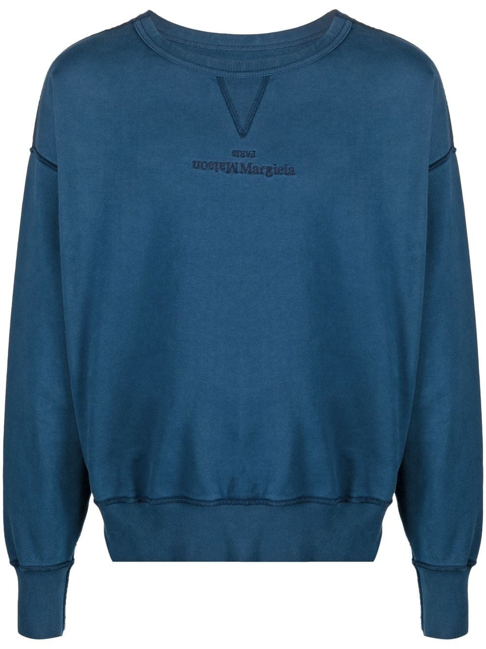 embroidered-logo detail sweatshirt navy blue cotton ribbed detailing embroidered logo to the front round neck long sleeves straight hem When buying this unisex item, keep in mind that it is graded in standard men's sizing. Made in Italy Composition Cotton 100% SIZE & FIT Model measurements Height 5 ft 11 in(1.8 m) Bust/Chest 31.49 in(80 cm) Hips 36.22 in(92 cm) Waist 25.59 in(65 cm) FittingInformation This piece fits true to size. We recommend you get your regular size Cut for a loose fit Made with a mid-weight fabric Washing instructions Machine Wash