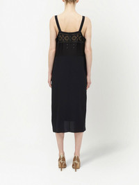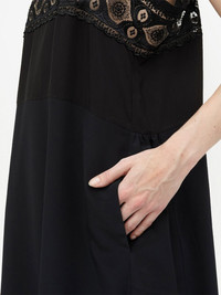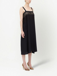 embroidered midi dress black flared design embroidered edge square neck sleeveless mid-length Made in Italy Composition Viscose 70%, Silk 30%