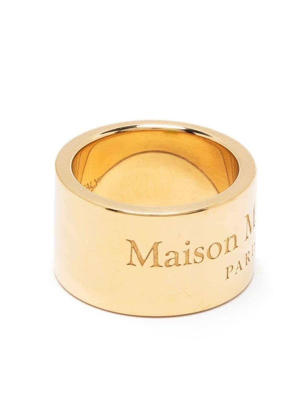 logo-engraved ring Highlights - Gold-tone - Gold plated - Metallic effect - Engraved logo - Chunky band Made in Italy SIZE & FIT Model measurements Height 6 ft 1 in(1.86 m) Bust/Chest 37.4 in(95 cm) Hips 34.64 in(88 cm) Waist 29.13 in(74 cm) Measurement Band Width 0.47 in(1.2 cm) CIRCUMFERENCE 2.04 in(5.2 cm)