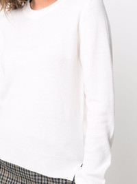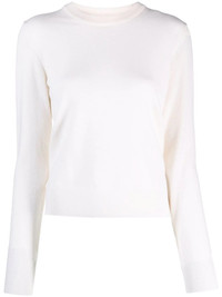 fine-knit crew-neck jumper Spun from wool, this off white jumper showcases Maison Margiela's minimalist aesthetic and use of a monochromatic palette. In a fine knit construction, this piece is simply detailed with side slits and ribbed-knit edges. Made in Italy Composition Wool 100% Washing instructions Dry Clean Only