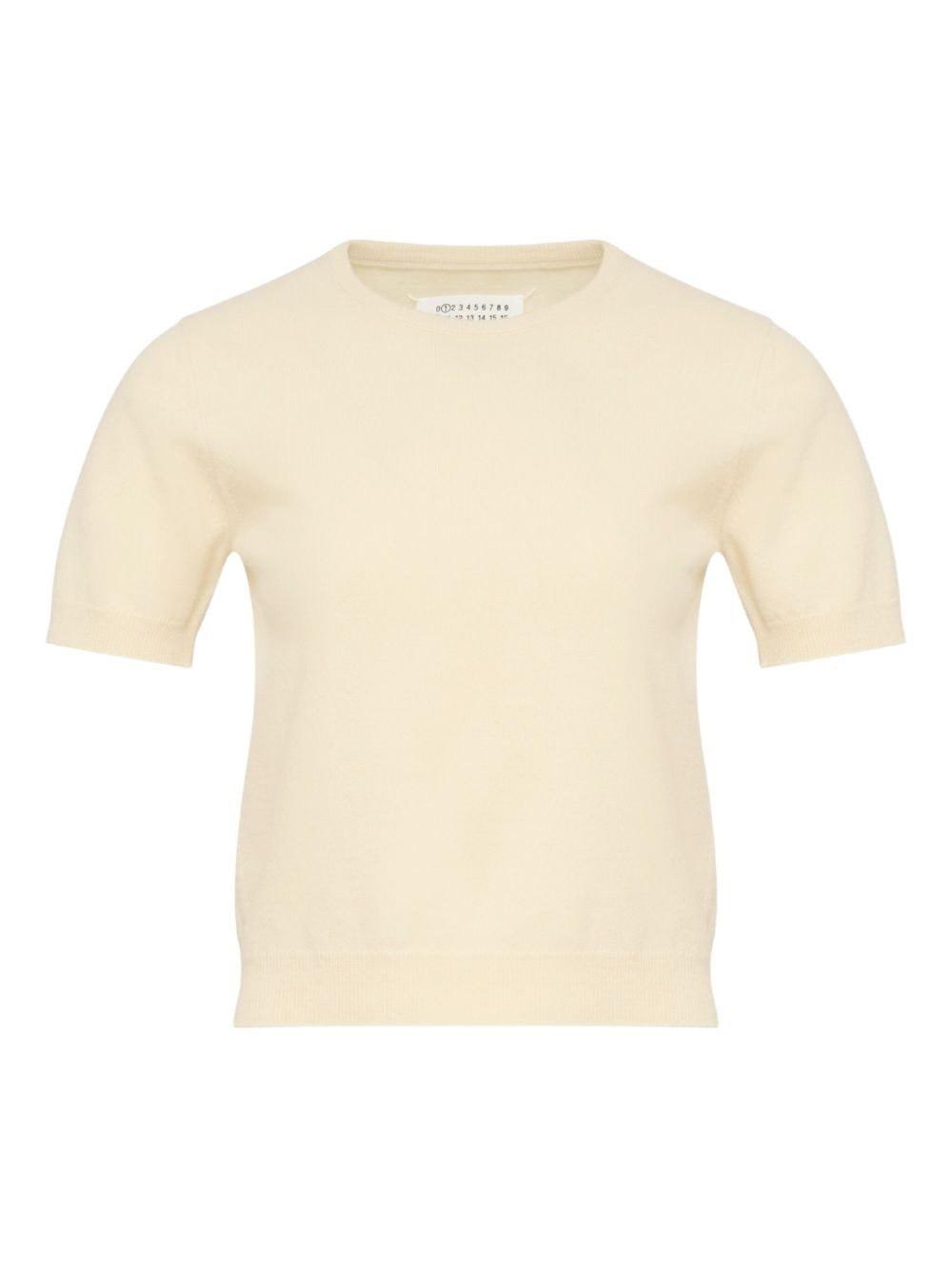 fine-knit T-shirt Highlights - Light yellow - Ribbed cuffs and hem - Crew neck - Short sleeves Made in Italy Composition Virgin Wool 100% Washing instructions Read Manufacturer Guidelines