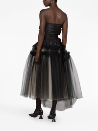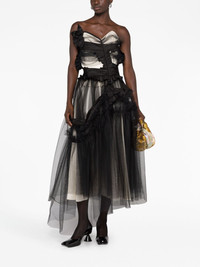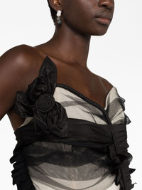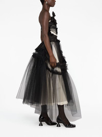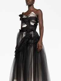 Decortique corset-style tulle dress Highlights - Jet black - Silk - Tulle netting - Floral applique - Signature four-stitch logo - Asymmetric design - Ruffled trim - Sweetheart neck - Strapless - Draped back - Asymmetric hem - Tiered skirt Made in Italy Composition Outer: Polyamide 100%, Silk 100% Lining: Polyester 72%, Silk 28% Washing instructions Dry Clean Only