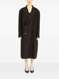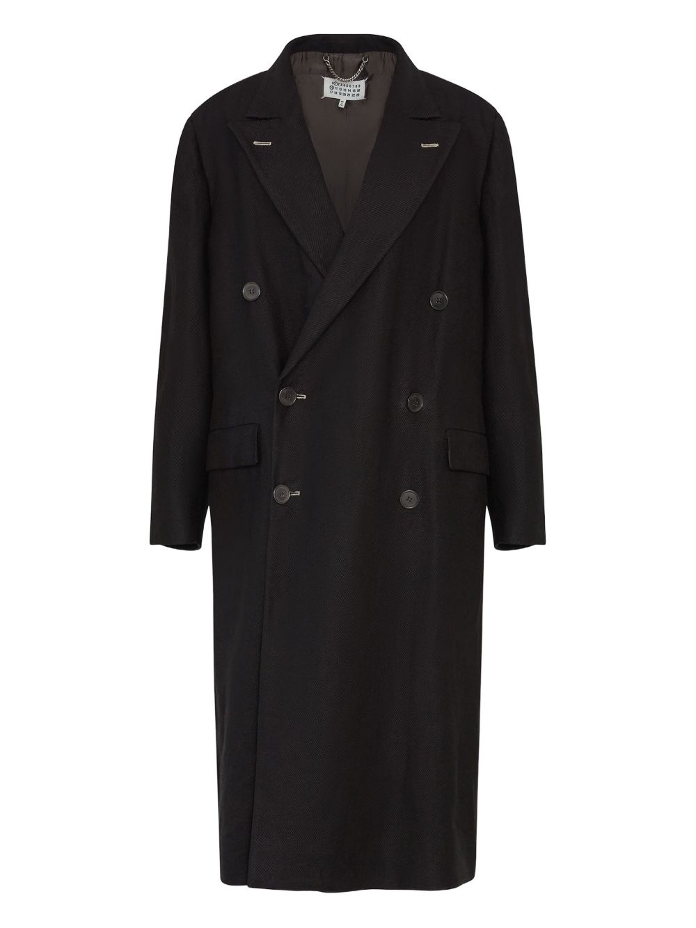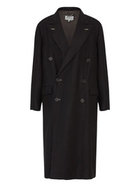 four-stich coat Highlights - Black - Double-breasted button fastening - Two side flap pockets - Buttoned cuffs - Peak lapels Made in Italy Composition Linen/Flax 59%, Virgin Wool 41%