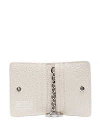 four-stitch leather card holder Highlights - Off-white - Calf leather - Grained texture - Bi-fold design - Signature four-stitch logo - Press-stud fastening - Keyring attachment - Internal logo stamp Made in Italy Composition Lining: Calf Leather 100%, Viscose 100% Outer: Calf Leather 100%, Brass 40%, Iron 30%, Zinc 30% SIZE & FIT Measurement LENGTH 3.93 in(10 cm) WIDTH 3.14 in(8 cm)