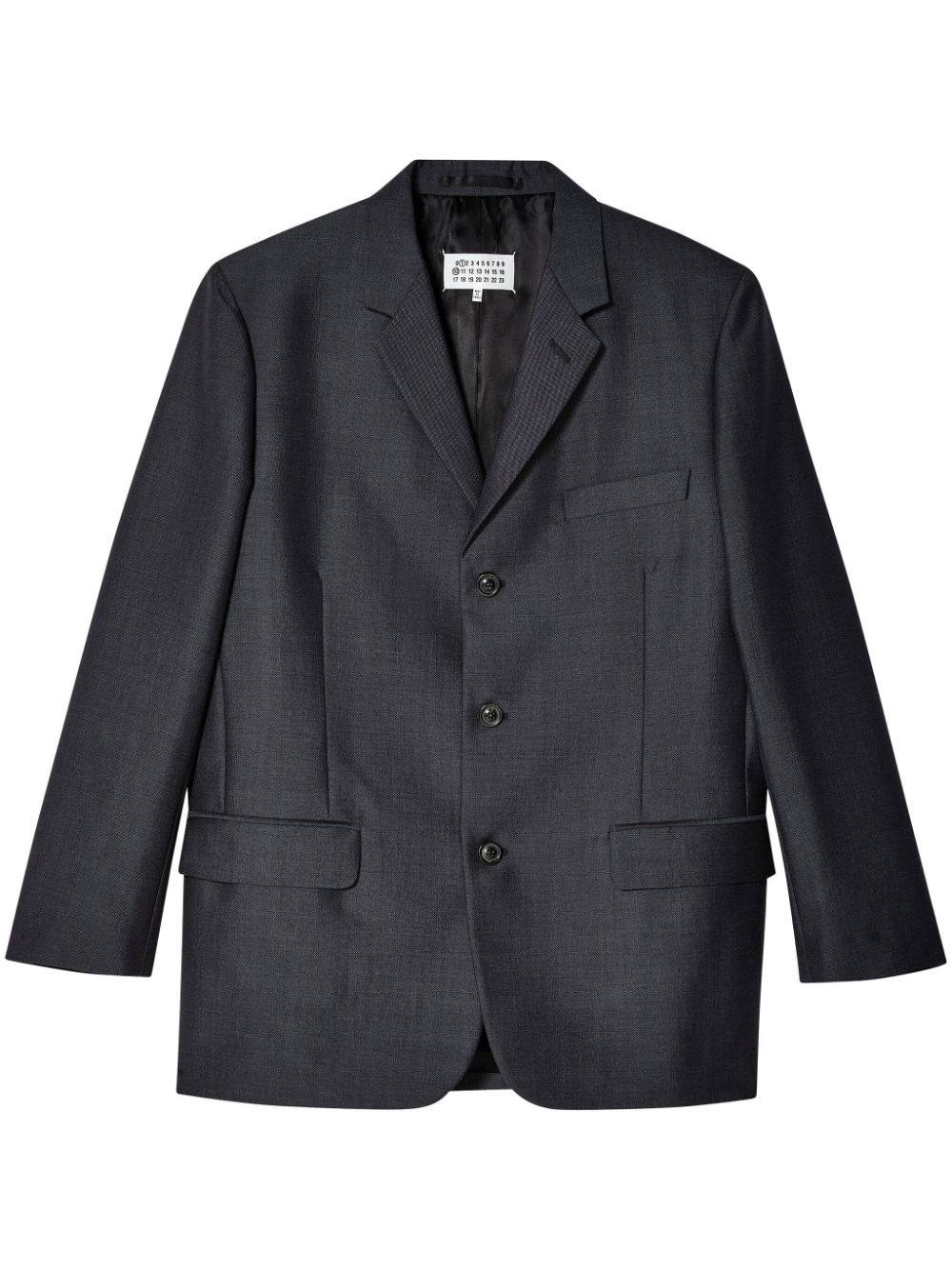 four-stitch blazer Highlights - Charcoal grey - Wool-mohair blend - Front button fastening - Notched lapels - Long sleeves - Buttoned cuffs - Chest welt pocket - Dart detailing - Two front flap pockets - Signature four-stitch logo - Central rear vent - Curved hem Made in Italy Composition Wool 70%, Mohair 30%