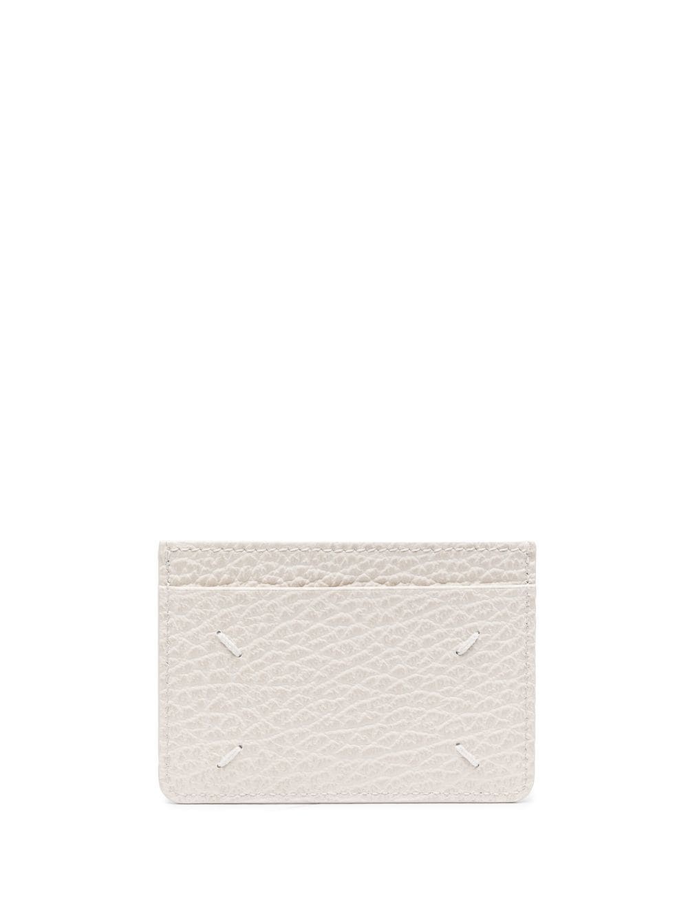 four-stitch leather card holder Maison Margiela presents a classic take on accessory design with this off white cardholder: boasting a pebbled leather construction, the item is detailed with the signature four stitch motif on the front. Highlights - Off white calf leather four-stitch leather cardholder from maison margiela featuring pebbled texture, signature four-stitch logo and internal card slots. Made in Italy Composition Lining: Viscose 100% Outer: Calf Leather 100% SIZE & FIT Measurement LENGTH 2.75 in(7 cm) WIDTH 3.93 in(10 cm)