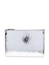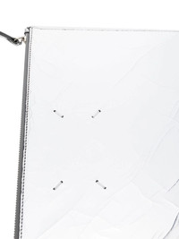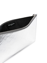 four-stitch logo clutch four-stitch logo clutch from Maison Margiela featuring silver-tone, calf leather, top zip fastening, internal logo patch, main compartment, signature four-stitch logo and metallic finish. Made in Italy Composition Outer: Calf Leather 100% Lining: Viscose 100%, Calf Leather 100% SIZE & FIT Model measurements Height 6 ft 1 in(1.85 m) Bust/Chest 35.82 in(91 cm) Hips 37.79 in(96 cm) Waist 29.13 in(74 cm) Measurement HEIGHT 7.48 in(19 cm) WIDTH 10.62 in(27 cm)