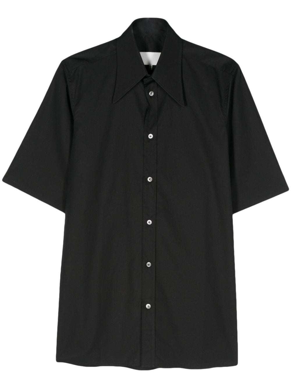 four stitch-logo cotton shirt Highlights - Black - Cotton - Poplin texture - Signature four-stitch logo - Pointed flat collar - Short sleeves - Straight hem - Front button fastening Made in Italy Composition Cotton 100% SIZE & FIT FittingInformation Designed to be unstructured, offering a loose fit throughout Made from a midweight non-stretch fabric