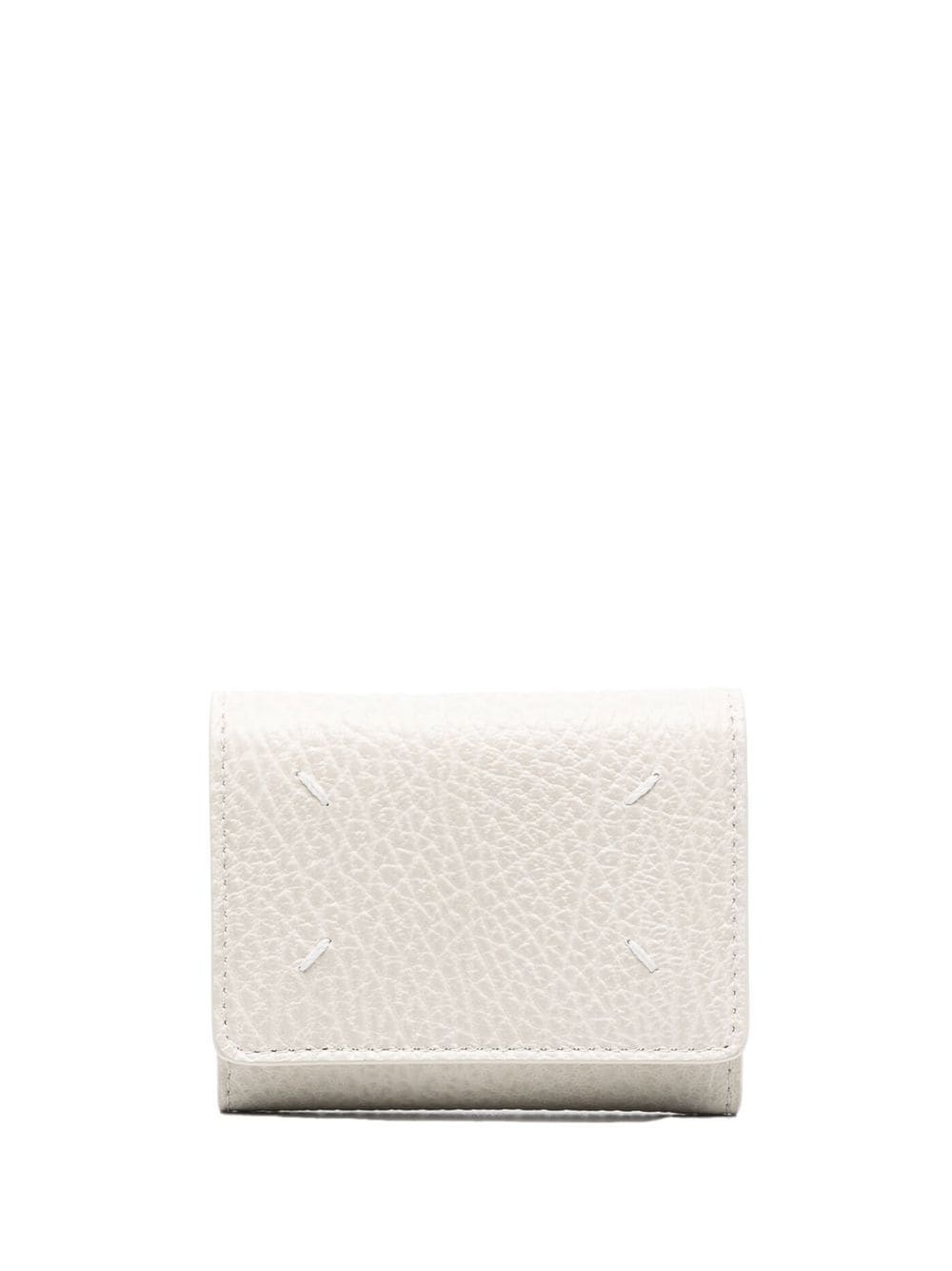 four-stitch leather wallet Highlights - Cream white - Calf leather - Grained texture - Signature four-stitch logo - Folded design - Internal card slots Made in Italy Composition Outer: Calf Leather 100% Lining: Viscose 100% Inner: Calf Leather 100% SIZE & FIT Measurement DEPTH 0.78 in(2 cm) LENGTH 4.33 in(11 cm) WIDTH 3.14 in(8 cm)