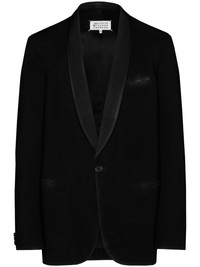 four-stitch logo single-breasted blazer Highlights - Black - Wool - Signature four-stitch logo - Satin trim - Shawl collar - Front button fastening - Long sleeves - Chest welt pocket - Two front jetted pockets - Straight hem Made in Italy Composition Wool 100%