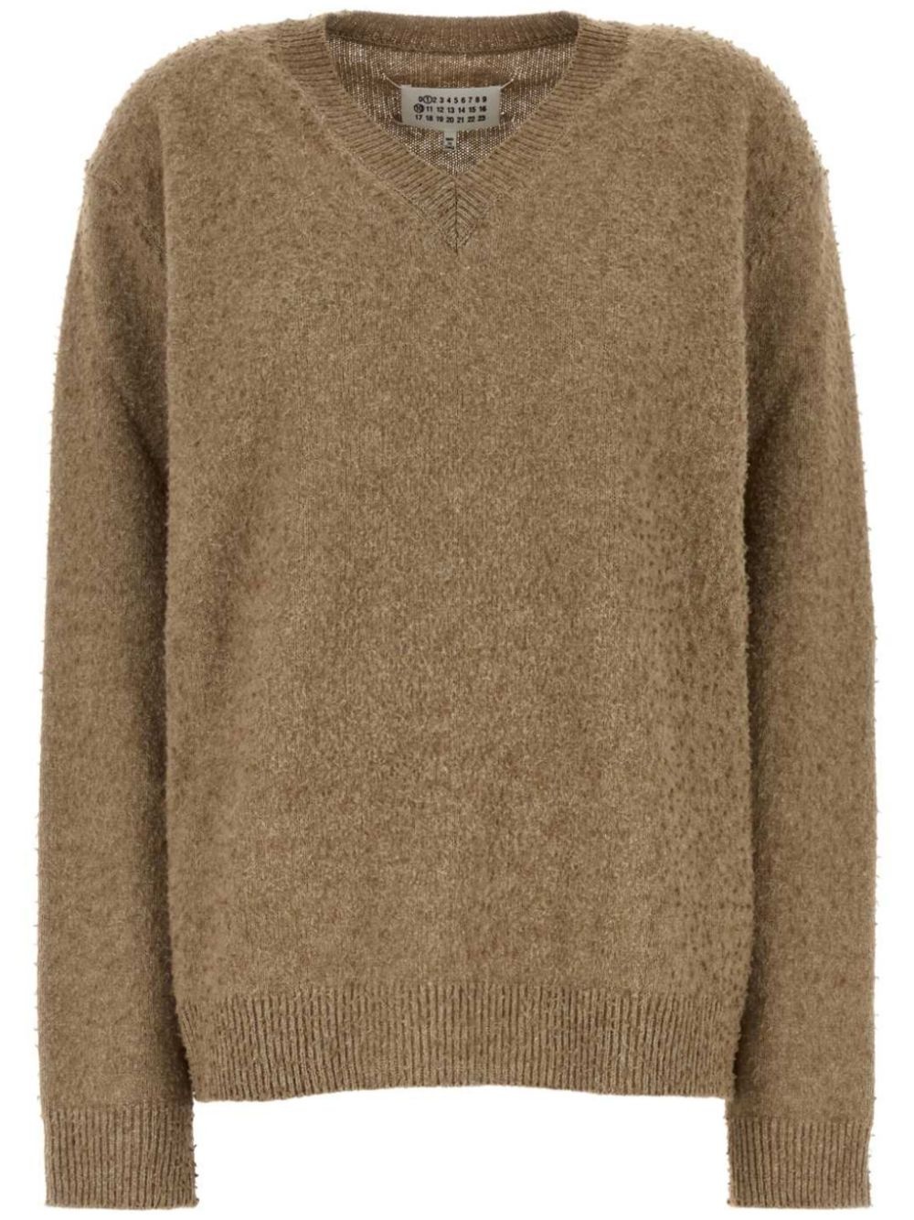 Four-Stitch-logo sweater Highlights - Walnut brown - Ribbed cuffs and hem - Ribbed v-neck - Long sleeves - When buying this unisex item, keep in mind that it is graded in standard men's sizing. Made In Italy Composition Wool 55%, Cotton 45%
