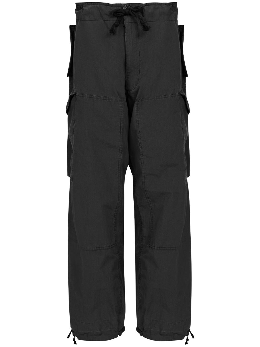 four-stitch logo track pants Highlights - Black - Cotton blend - Signature four-stitch logo - Elasticated drawstring waistband - Two side flap pockets - Two side cargo pockets - Drawstring cuffs Made in Italy Composition Cotton 50%, Polyamide 50%