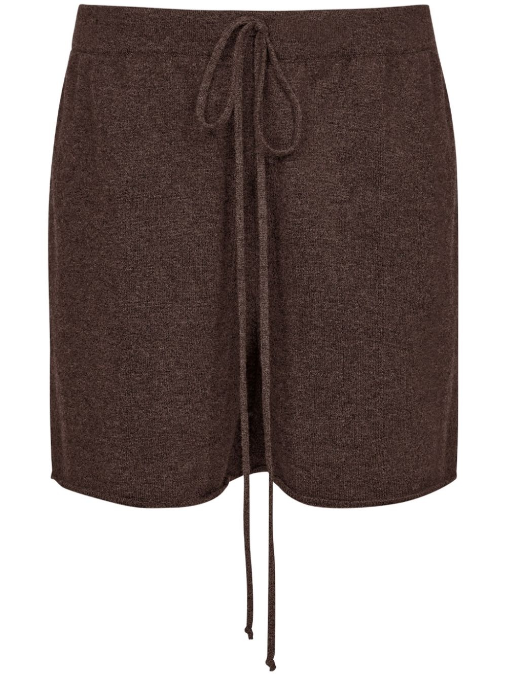 four-stitch logo track shorts Highlights - Chocolate brown - Wool-cashmere blend - Signature four-stitch logo - Elasticated drawstring waistband - Two side slit pockets - Thigh-length Imported Composition Wool 70%, Cashmere 30%