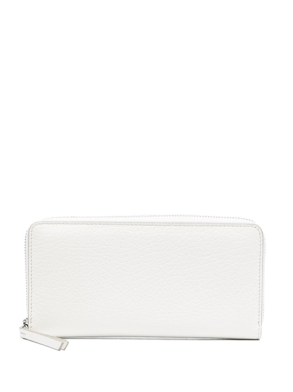 four-stitch zip-around wallet Highlights - White - Calf leather - Grained texture - Signature four-stitch logo - Silver-tone hardware - All-around zip fastening - Internal card slots - Note compartment - Internal zip-fastening pocket - Internal logo stamp Made in Italy Composition Outer: Viscose 100%, Brass 100%, Calf Leather 100%, Zinc 100%, Aluminium 100%, Copper 100% Lining: Calf Leather 100% SIZE & FIT Measurement DEPTH 0.78 in(2 cm) LENGTH 7.48 in(19 cm) WIDTH 3.93 in(10 cm)