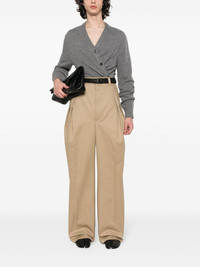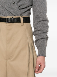four-stitch pintuck straight trousers Highlights - Camel brown - Twill weave - Belt loops at the wasit - Pintuck detailing - Two side slash pockets - Pleat detailing - Pressed crease - Signature four-stitch logo - Two rear jetted pockets - Internal logo tag - Straight hem - Front button and zip fastening Made in Italy Composition Outer: Polyester 60%, Cotton 40% Lining: Polyester 65%, Cotton 35% SIZE & FIT Model measurements Height 6 ft 1 in(1.85 m) Bust/Chest 36.22 in(92 cm) Hips 36.22 in(92 cm) Waist 27.55 in(70 cm) FittingInformation Designed with a wide leg, offering a loose and roomy fit Made from a midweight non-stretch fabric This piece fits true to size – take your usual size