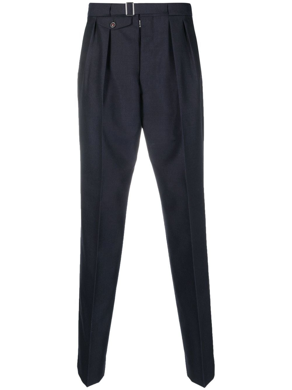 four-stitch tapered trousers navy blue wool blend signature four-stitch logo tailored cut tapered leg mid-rise pleat detailing belted waist front flap pocket two rear flap pockets concealed front fastening Made in Italy Composition Lining: Cotton 100%, Viscose 100% Outer: Wool 70%, Mohair 30% SIZE & FIT Model measurements Height 5 ft 10 in(1.78 m) Bust/Chest 31.49 in(80 cm) Hips 37 in(94 cm) Waist 23.62 in(60 cm) FittingInformation This piece fits true to size. We recommend you get your regular size Designed for a slim fit at the waist and loose over the leg Made with a mid-weight non-stretch fabric Washing instructions Dry Clean Only