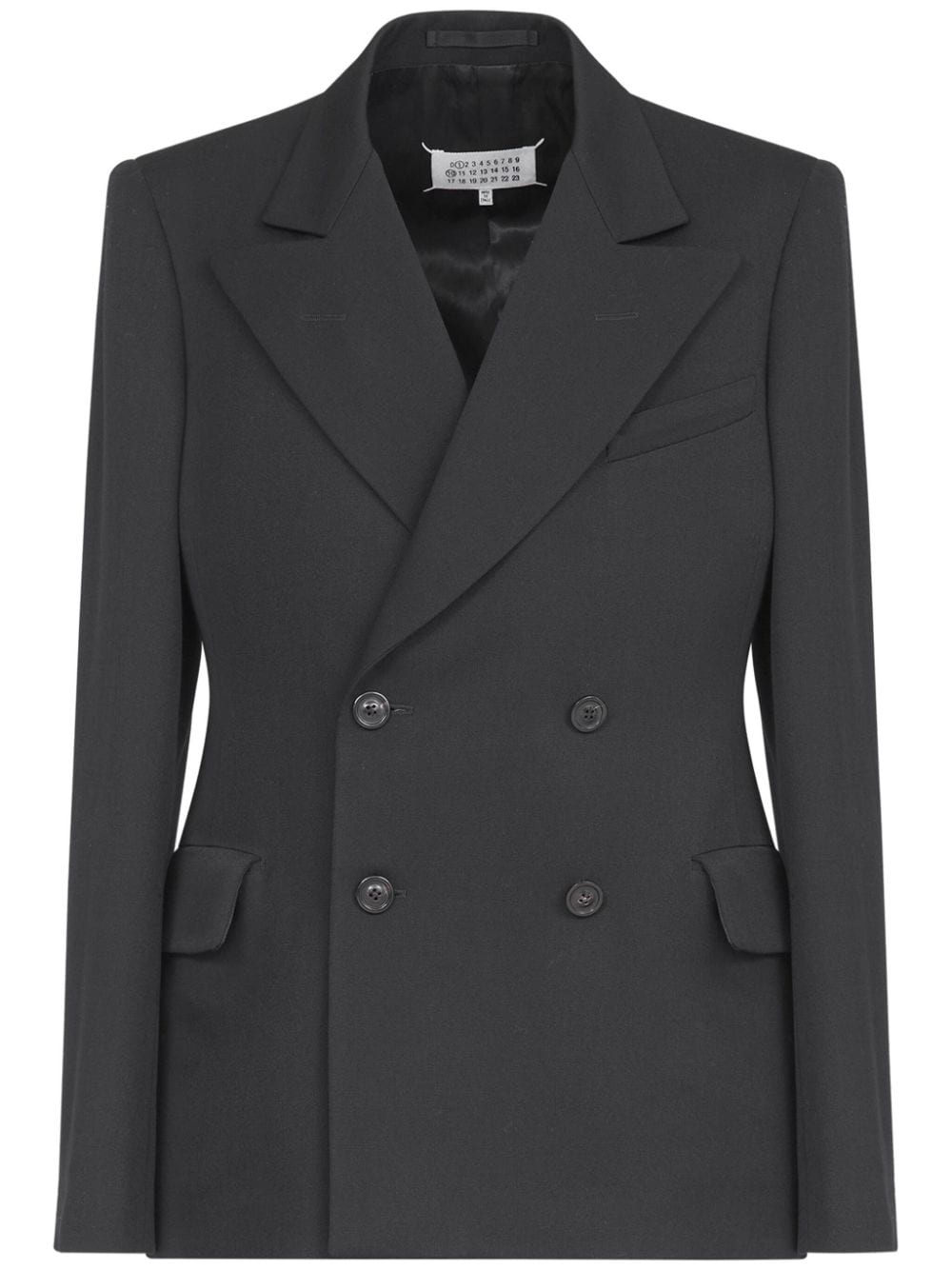 four-stitch wool blazer Highlights - Black - Wool - Signature four-stitch logo - Tailored design - Wide notch lapels - Double-breasted button fastening - Long sleeves - Buttoned cuffs - Chest welt pocket - Two side flap pockets - Straight hem Made in Italy Composition Wool 100%