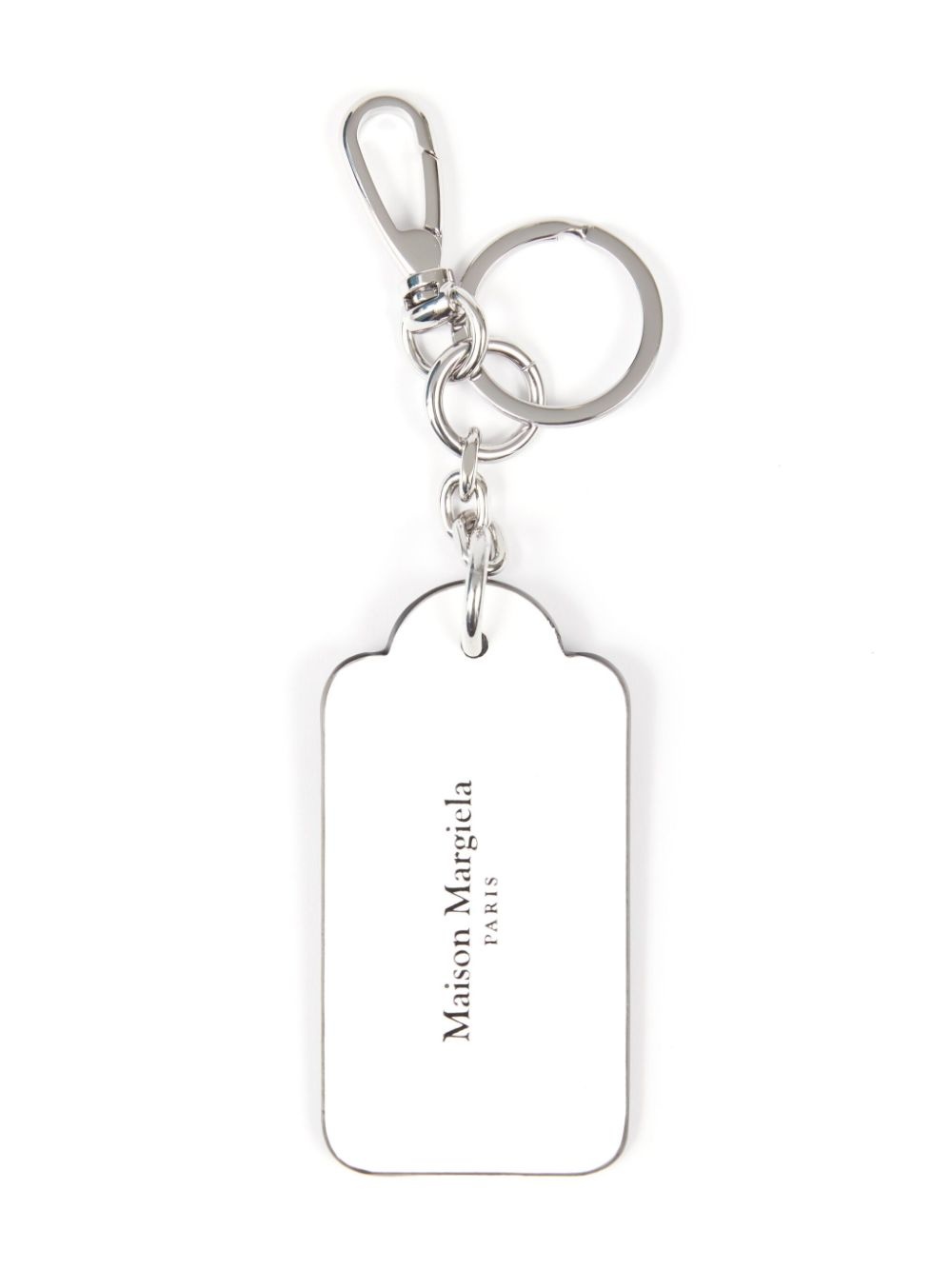 Four Stitched keyring Highlights - The large keyring with a hook is crafted from calf leather. the logo appears on one side and maison margiela’s signature, the four stitches, appear on the other; the opposite of a label. Made in Italy Composition Calf Leather 100%, Brass 100% SIZE & FIT Measurement LENGTH 6.88 in(17.5 cm) WIDTH 1.96 in(5 cm)
