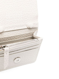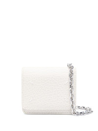 Four Stitches leather chain wallet Highlights - Ivory white - Calf leather - Grained texture - Signature four-stitch logo - Internal logo stamp - Silver-tone hardware - Detachable chain-link shoulder strap - Foldover top with magnetic fastening - Internal zip-fastening pocket - Internal card slots Made in Italy Composition Outer: Calf Leather 100%, Brass 95%, Zinc 5% Lining: Calf Leather 100%, Viscose 100% SIZE & FIT Measurement DEPTH 1.18 in(3 cm) STRAP 21.25 in(54 cm) WIDTH 3.93 in(10 cm) HEIGHT 3.54 in(9 cm)