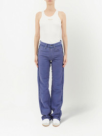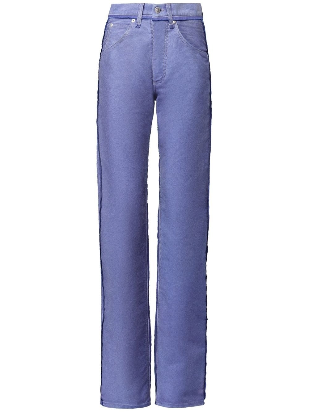 distressed straight-leg jeans Highlights - Cobalt blue - Cotton - Frayed detailing - Belt loops - High waist - Front button and zip fastening - Classic five pockets - Straight leg Made in Italy Composition Cotton 100%