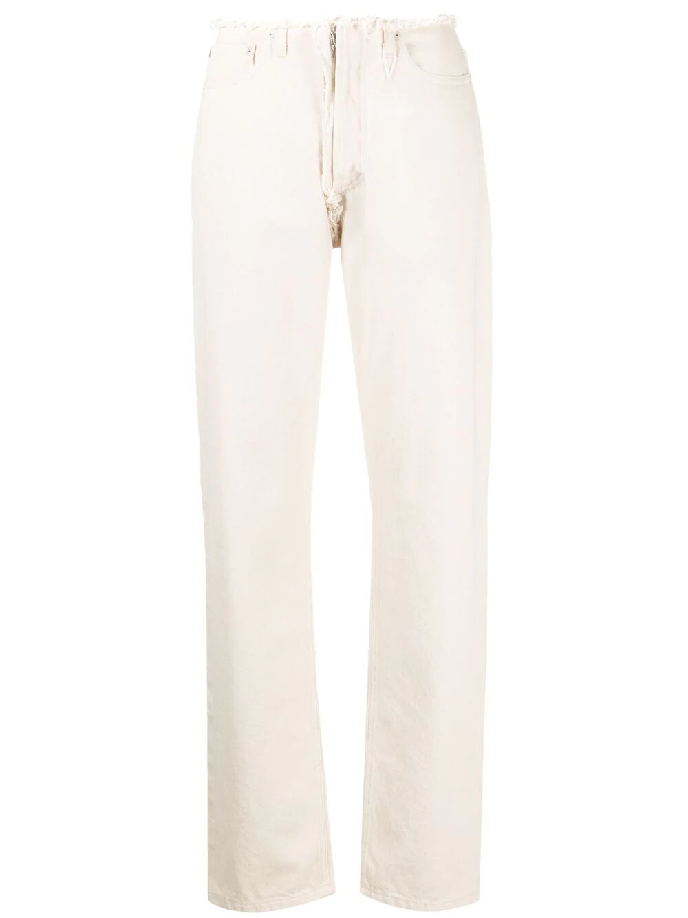 frayed straight-leg jeans Boring denim is a thing of the past. Updating a timeless design with frayed-edge detailing, these straight-leg jeans from Maison Margiela will breathe new life into your collection. Out of the ordinary. Made in Italy Composition Outer: Cotton 100% Lining: Polyester 65%, Cotton 35% SIZE & FIT Model measurements Height 5 ft 10 in(1.79 m) Bust/Chest 31.88 in(81 cm) Hips 35.43 in(90 cm) Waist 23.62 in(60 cm) Measurement FRONT RISE 10.62 in(27 cm) INSIDE LEG 31.49 in(80 cm) HIPS 18.5 in(47 cm) FittingInformation This piece fits true to size. We recommend you get your regular size Designed to be fitted at the waist and hips, loose over the leg Made with a mid-weight non-stretch fabric Washing instructions Machine Wash