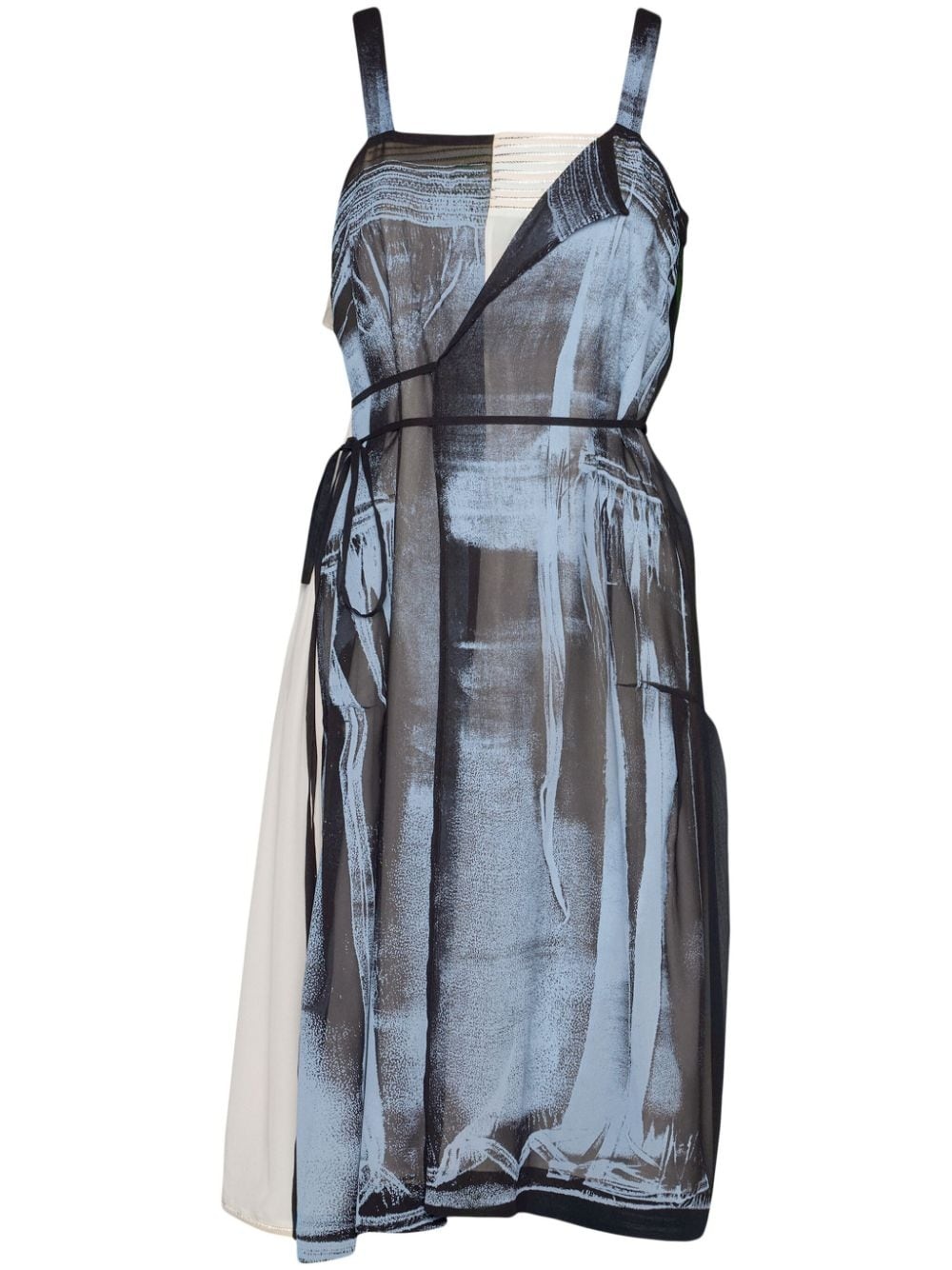 Freeze-frame silk dress Highlights - Black/blue/white - Silk - Layered effect - Matte effect - Crease effect - All-over graphic print - Signature four-stitch logo - Square neck - Thin shoulder straps - Drawstring waist - Flared - Mid-length Made in Italy Composition Silk 100% Washing instructions Read Manufacturer Guidelines