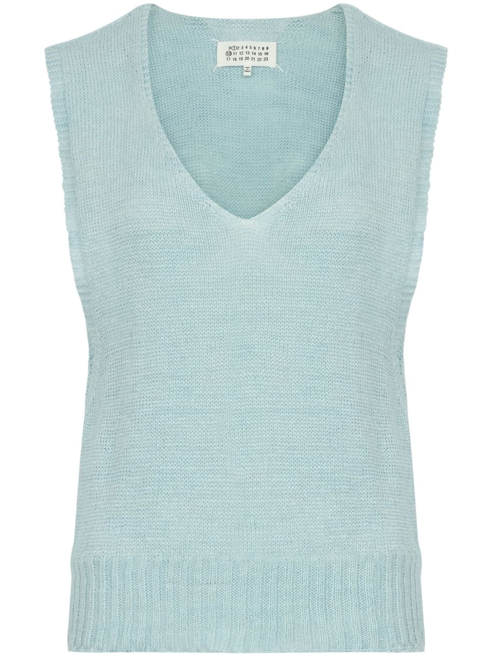 Fussbett knitted top Highlights - Blue - Hemp - Knitted construction - V-neck - Sleeveless - Signature four-stitch logo - Ribbed hem Imported Composition Hemp 100%