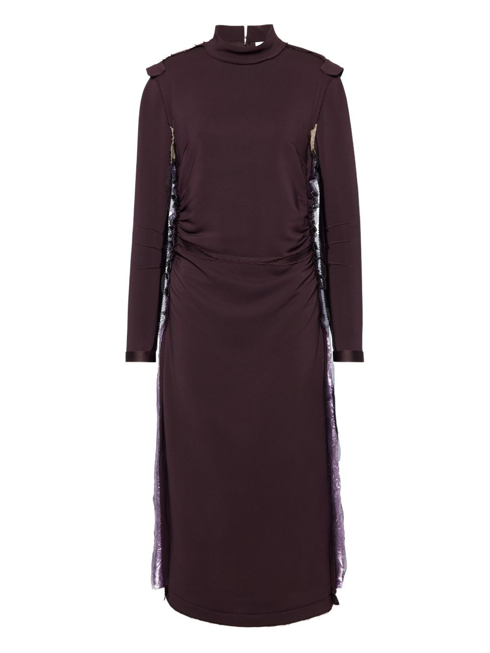 gathered midi dress Highlights - Dark brown - Gathered waist - Long sleeves - Ruffle detail - High neck Made in Italy Composition Acetate 76%, Silk 24% Washing instructions Read Manufacturer Guidelines