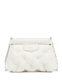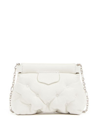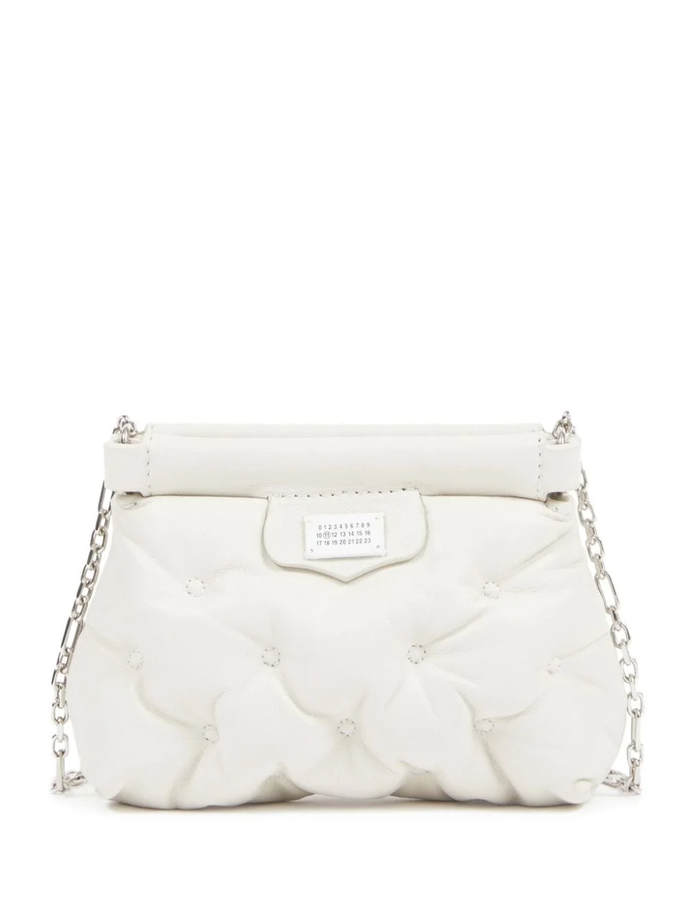 Glam Slam Classique mini bag Maison Margiela's iconic Glam Slam Classique bag is showcased here in a micro size. First unveiled on the SS18 runway, it is characterised by its quilted silhouette, drawing inspiration from hand-stitched quilts created in Marseilles. This iteration is presented in white and features a detachable chain-link strap. Highlights - White - Sheepskin - Grained texture - Quilted - Logo patch to the front - Signature numbers motif - Detachable chain-link shoulder strap - Magnetic fastening - Main compartment - Debossed internal logo - Full lining Made in Italy Composition Lining: Polyester 100% Outer: Sheepskin 100% SIZE & FIT Measurement DEPTH 1.96 in(5 cm) WIDTH 5.11 in(13 cm) HEIGHT 4.13 in(10.5 cm)