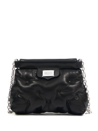 Glam Slam Classique Baby shoulder bag Maison Margiela's iconic Glam Slam Classique bag is showcased here in a micro size. First unveiled on the SS18 runway, it is characterised by its quilted silhouette, drawing inspiration from hand-stitched quilts created in Marseilles. This iteration is presented in black and features a detachable chain-link strap. Highlights - Black - Lambskin - Grained texture - Quilted - Logo patch to the front - Signature numbers motif - Detachable chain-link shoulder strap - Magnetic fastening - Main compartment - Debossed internal logo - Full lining Made in Italy Composition Outer: Lamb Skin 100% Lining: Polyester 100% SIZE & FIT Measurement DEPTH 1.96 in(5 cm) HEIGHT 4.13 in(10.5 cm) WIDTH 5.11 in(13 cm)