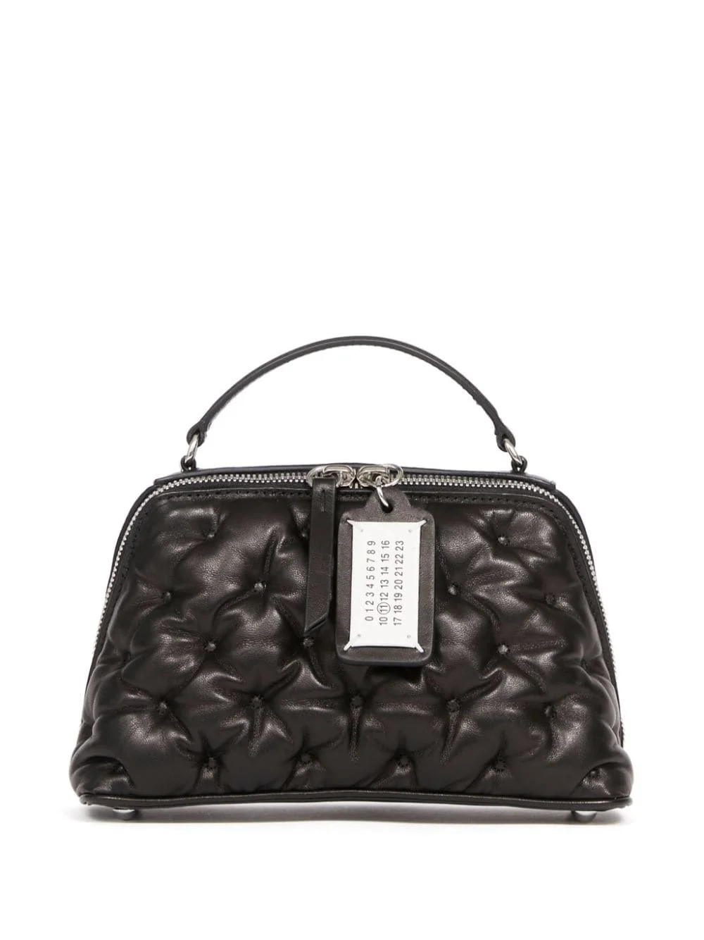 Glam Slam Embroidery Trapezoid tote bag Highlights - Black - Lambskin - Quilted - Signature numbers motif - Silver-tone hardware - Internal logo stamp - Top zip fastening - Single flat top handle - Detachable leather and chain-link shoulder strap - Main compartment Made in Italy Composition Outer: Lamb Skin 100% SIZE & FIT Measurement DEPTH 2.75 in(7 cm) WIDTH 8.26 in(21 cm) HEIGHT 4.33 in(11 cm)