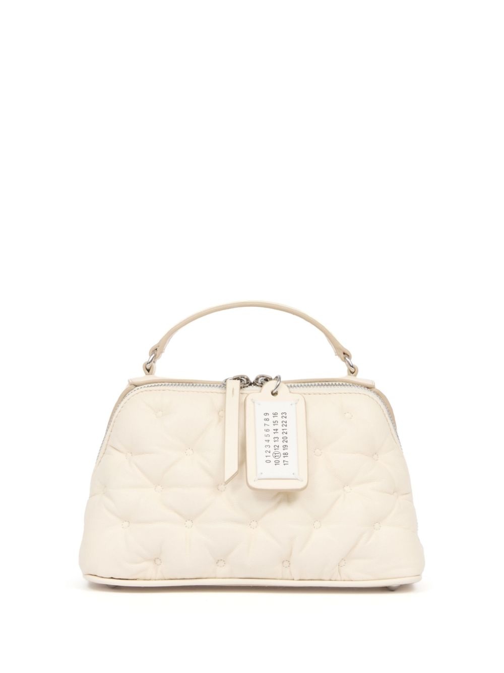 Glam Slam tote bag Highlights - Ecru - Top zip fastening - Single flat top handle - Detachable leather and chain-link shoulder strap - Signature numbers motif Made in Italy Composition Outer: Calf Leather 100%, Lamb Skin 100% Lining: Polyester 100% SIZE & FIT Measurement DEPTH 2.75 in(7 cm) HEIGHT 4.33 in(11 cm) WIDTH 8.26 in(21 cm)