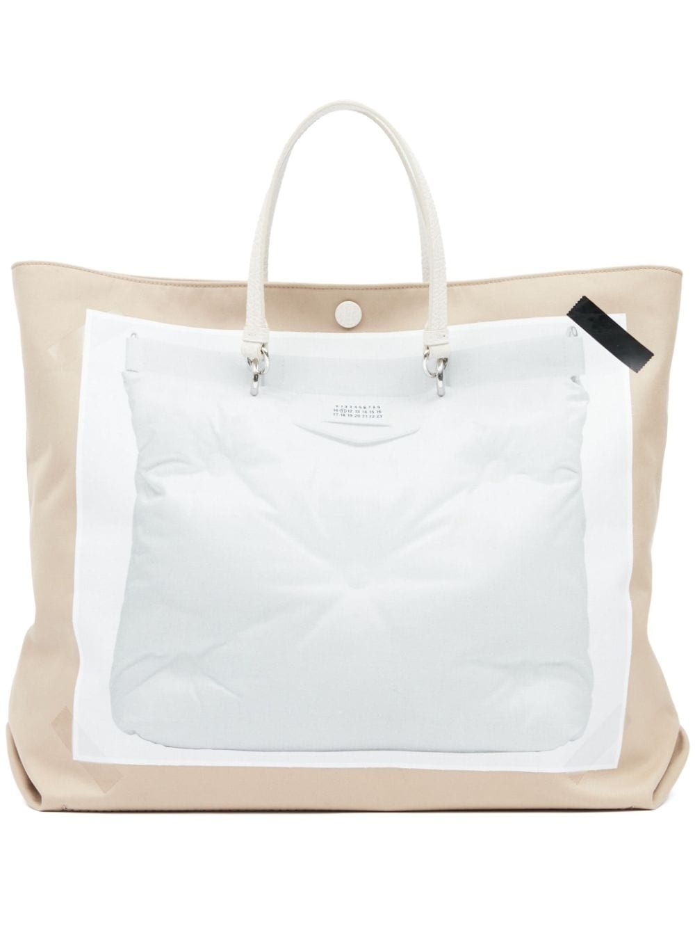 Glam Slam trompe l'oeil-print tote bag Highlights - Archive beige/white - Canvas - Trompe l'oeil print - Applique detail - Signature numbers motif - Flat top handles - Adjustable detachable shoulder strap - Concealed press-stud fastening - Main compartment - Internal zip-fastening pocket Made in Italy Composition Outer: Polyester 65%, Cotton 35% SIZE & FIT Measurement STRAP 15.74 in(40 cm) DEPTH 7.08 in(18 cm) HANDLE 5.9 in(15 cm) WIDTH 17.71 in(45 cm) HEIGHT 15.74 in(40 cm)