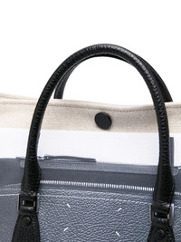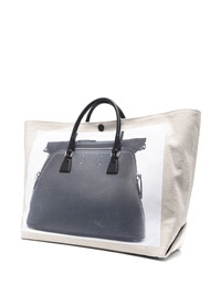 5AC trompe-l'oeil tote bag Highlights - Black/white/beige - Cotton/linen/flax/calf leather - All-over graphic print - Button fastening - Two top handles - Main compartment Made in Italy Composition Outer: Linen/Flax 100%, Calf Leather 100% Lining: Cotton 100% SIZE & FIT Model measurements Height 5 ft 10 in(1.78 m) Bust/Chest 31.49 in(80 cm) Hips 37 in(94 cm) Waist 23.62 in(60 cm) Measurement DEPTH 7.08 in(18 cm) HANDLE 4.92 in(12.5 cm) HEIGHT 14.56 in(37 cm) STRAP 32.67 in(83 cm) WIDTH 23.62 in(60 cm)