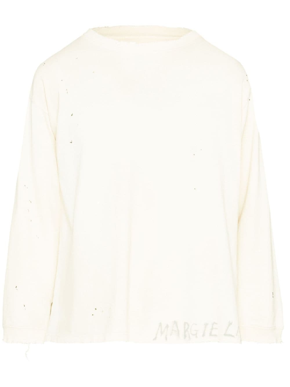 Handwritten cotton sweatshirt Highlights - Off-white - Cotton - Logo print to the front - Signature four-stitch logo - Paint splatter detail - Long sleeves - Crew neck - Raw-cut edge Made in Italy Composition Cotton 100% Washing instructions Machine Wash