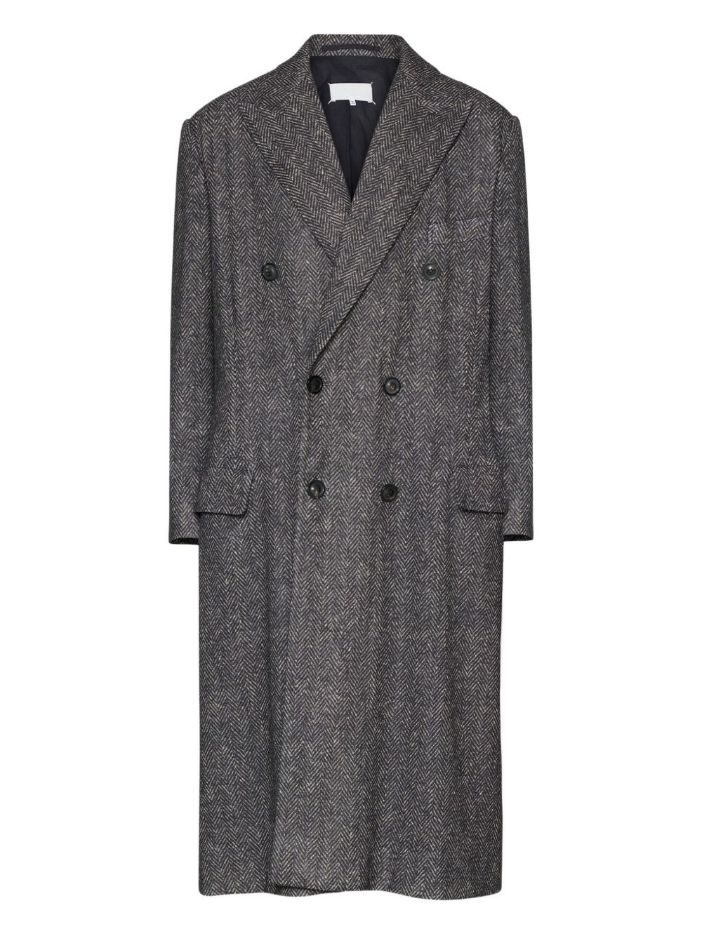 herringbone double-breasted coat Highlights - Dark grey - Herringbone pattern - Double-breasted fastening - Peak lapels - Long sleeves - Straight hem Made in Italy Composition Wool 100% Washing instructions Read Manufacturer Guidelines