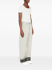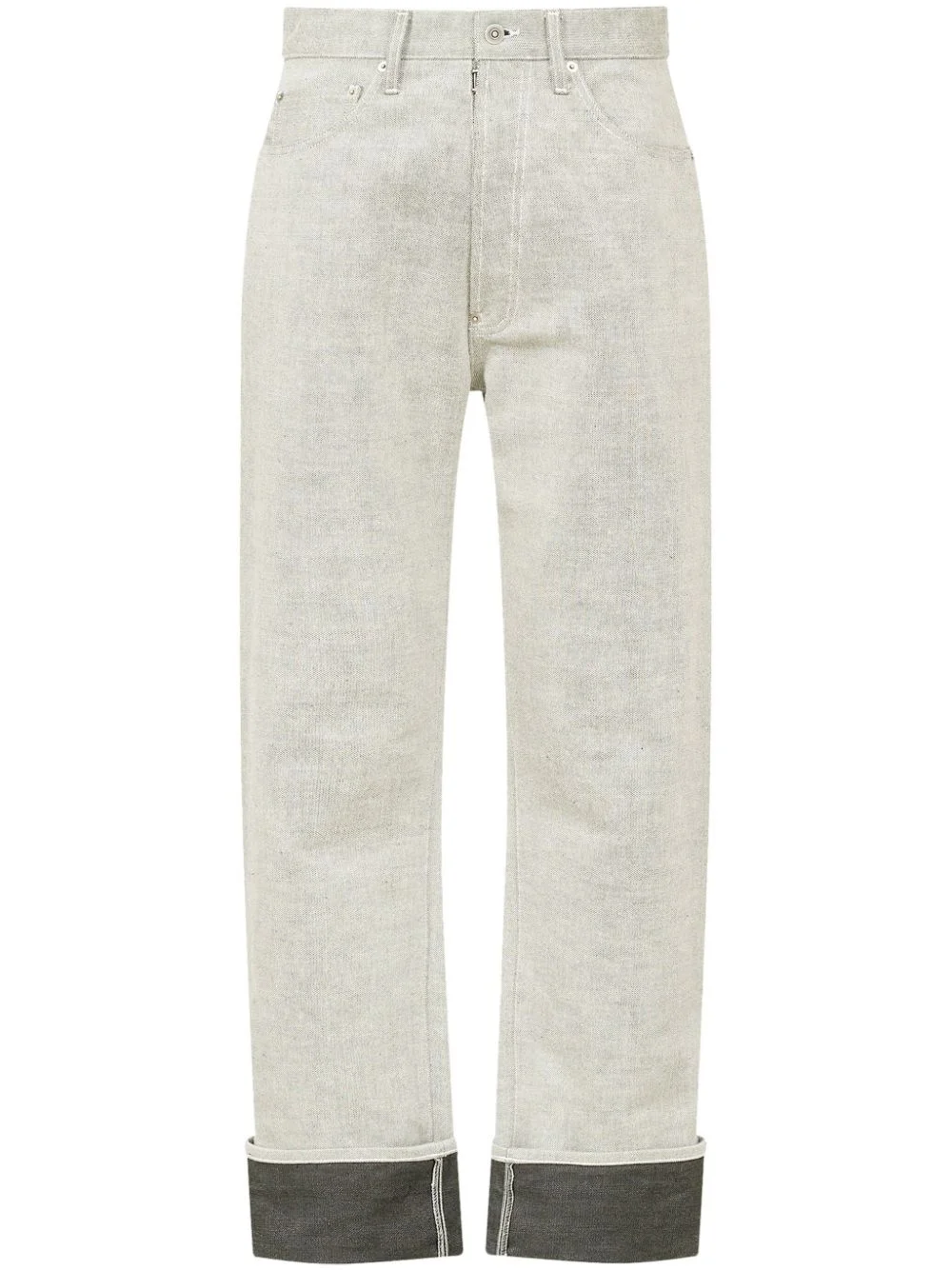 high-rise straight jeans Made from cotton denim in a muted grey hue, these jeans speak to Maison Margiela's exploration of silhouettes. They're cut from cotton denim to a straight-leg silhouette. Highlights - Grey - Cotton - Denim - Decorative buckle detail - High-rise - Belt loops - Concealed fly and button fastening - Classic five pockets - Straight leg Imported Composition Cotton 100%