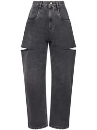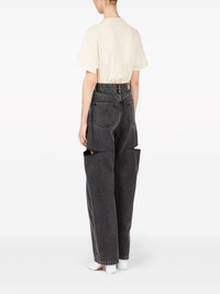 high-rise tapered jeans Capturing Maison Margiela's creative approach to fashion, these black tapered jeans feature side cut-outs that emphasize the loose fit. They are made in Italy from pure cotton and boast the iconic four-stitch logo on the back. Highlights - Black - Cotton - Denim - Cut-out detailing - Signature four-stitch logo - High-rise - Belt loops - Concealed fly and button fastening - Classic five pockets - Tapered leg Made in Italy Composition Cotton 100% SIZE & FIT Measurement FRONT RISE 13.38 in(34 cm) INSIDE LEG 31.1 in(79 cm) HIPS 34.64 in(88 cm) WAIST 23.62 in(60 cm)