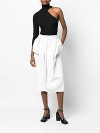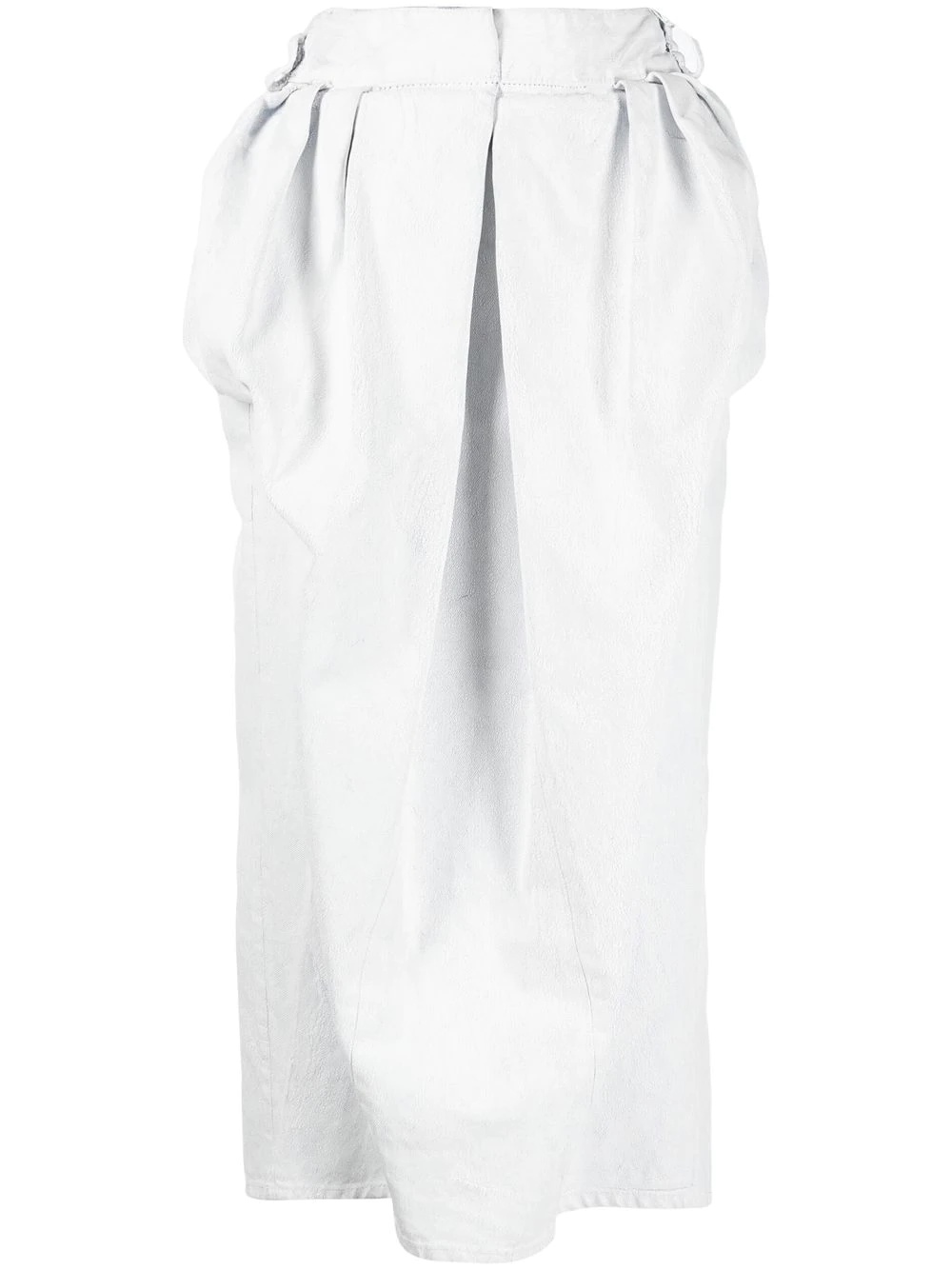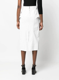 gathered denim midi skirt Highlights - White - Cotton - High-waisted - Pressed crease - Belt loops - Rear zip fastening - Below-knee length Made in Italy Composition Outer: Cotton 100% Lining: Polyester 65%, Cotton 35% SIZE & FIT Model measurements Height 5 ft 11 in(1.8 m) Bust/Chest 31.49 in(80 cm) Hips 36.61 in(93 cm) Waist 24.4 in(62 cm) Washing instructions Hand Wash