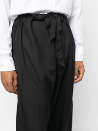 silk wide-leg trousers Highlights - Jet black - Silk - High waist - Tied waist - Wide leg Made in Italy Composition Silk 100% SIZE & FIT Model measurements Height 6 ft 2 in(1.87 m) Bust/Chest 38.18 in(97 cm) Hips 36.61 in(93 cm) Waist 29.13 in(74 cm) FittingInformation Designed for a straight-leg, allowing for an unrestricted and comfortable fit over the leg Adjust this piece’s waistband to your preference using the drawstring Made from a lightweight non-stretch fabric This piece fits true to size – take your usual size Measurement INSIDE LEG 31.49 in(80 cm) FRONT RISE 16.92 in(43 cm) WAIST 44.88 in(114 cm) Washing instructions Dry Clean Only